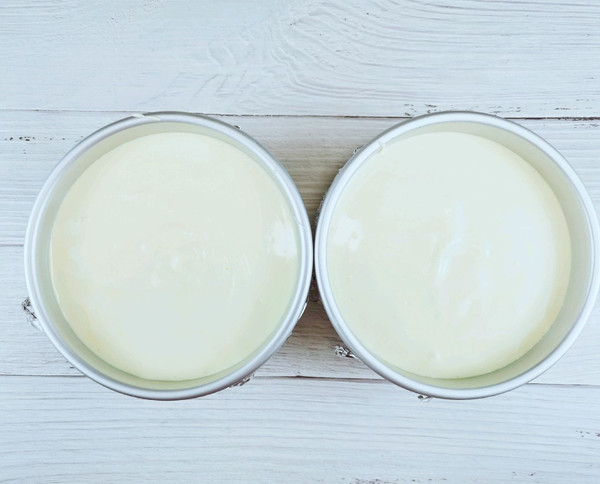 搅拌好的蛋糕糊倒入模具里,震出气泡。