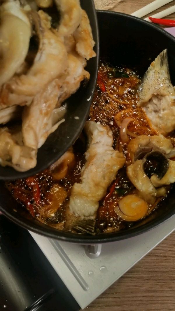 油烧热后下鱼块炸至表面有点焦黄捞出