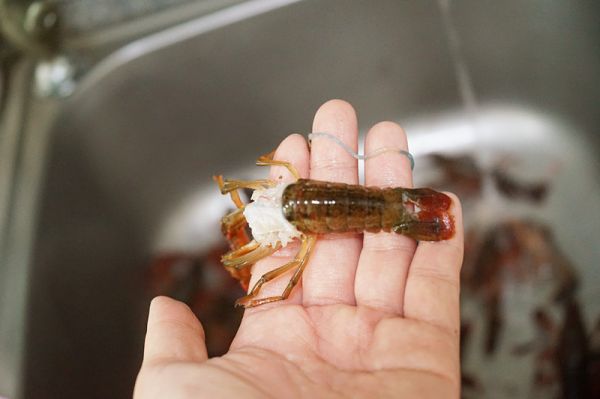 然后看这里是小龙虾的腮,用手弄掉,这样吃起来干净也方便