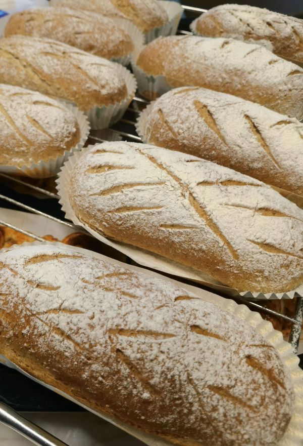 卷起来两头收口,将底收口放置朝下,撒上面粉