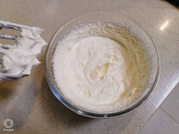 将200g淡奶油+20g细砂糖+0.5g海盐,打到7分发。