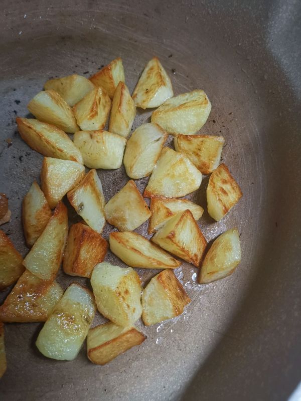 平底锅无油预热,下土豆1分钟,去除多余水分