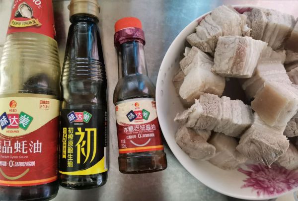 五花肉洗干净切块。