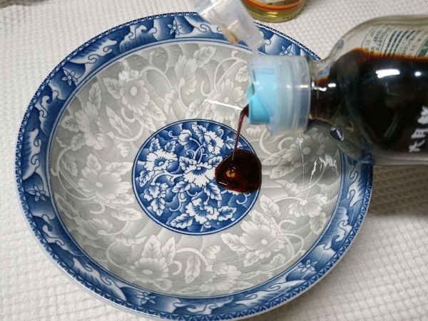 汤碗内加入生抽,米醋,香油,食用盐搅拌均匀