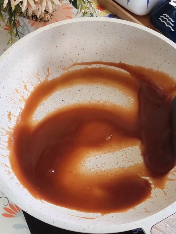 锅中留少许油,倒入糖醋汁,煮至黏稠。