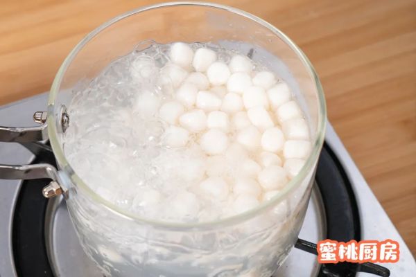 另烧一锅热水(约1L),下入马蹄清心丸煮至全部浮起,再煮8分钟至全部透明