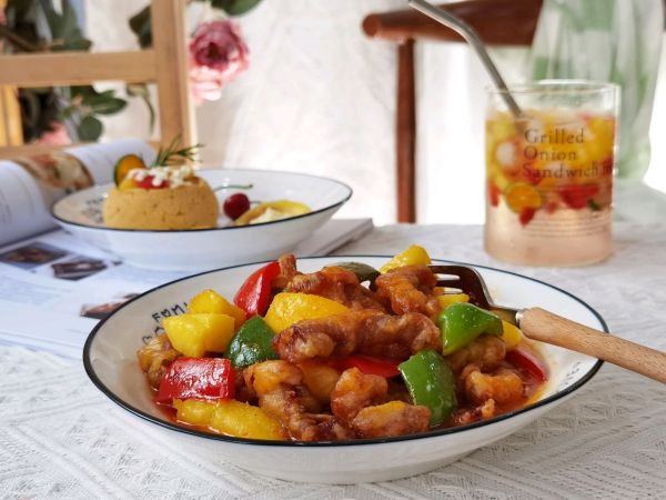 ⭐️黄桃小酥肉:里脊肉加糖,蚝油,米醋 腌制10分钟。