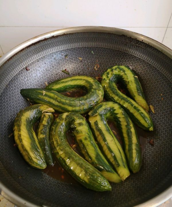 咕嘟咕嘟 看锅里的黄瓜入味儿变软了蛇形就出来了…