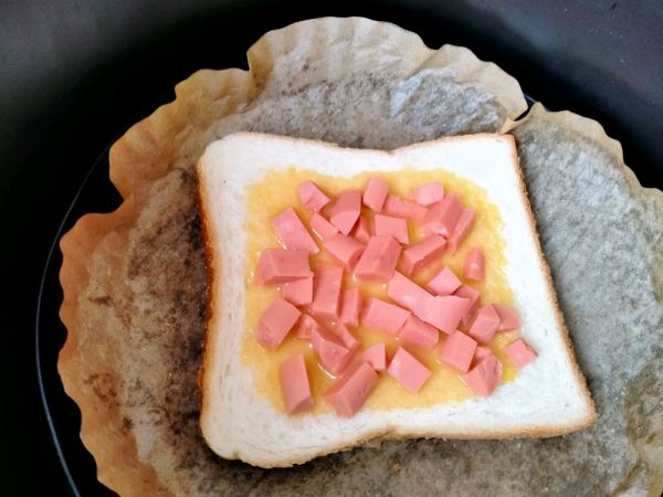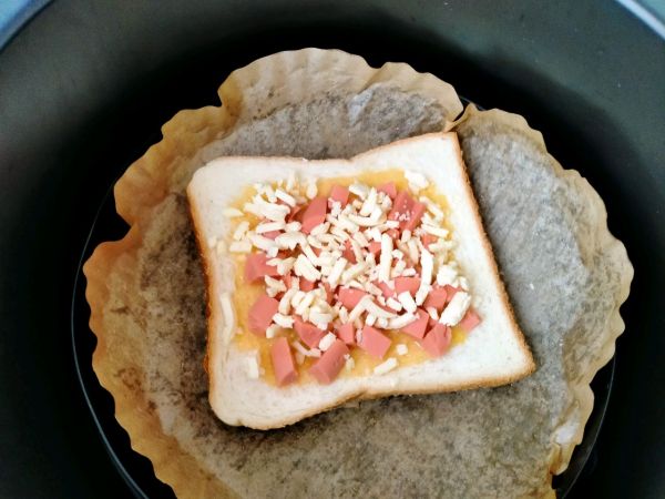 空气炸锅180度,烤8分钟。芝士融化,吐司四边变色即可。