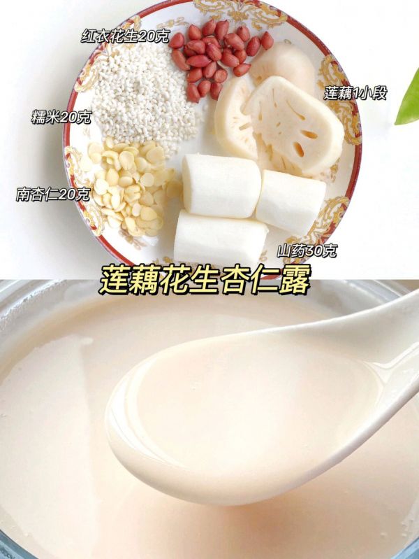 3️⃣莲藕花生杏仁露 南杏仁20克➕红衣花生20克➕糯米20克➕山yao30克➕莲藕1小段