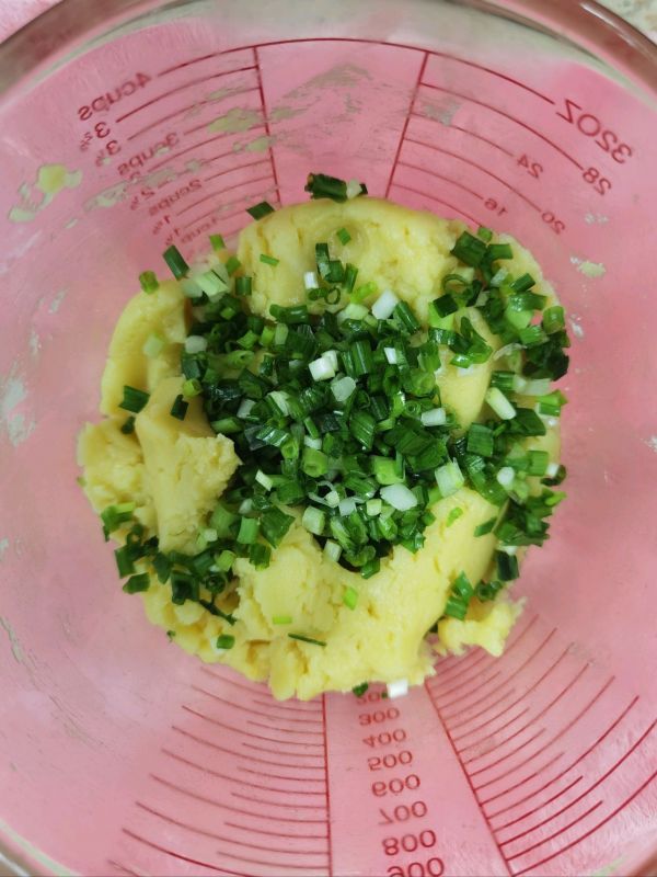 加入葱花(葱洗净后用厨房纸吸干水份再切碎)
