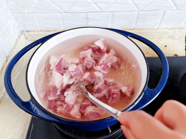 撇去血水和杂质,可以多加几次水煮沸,直至汤清即可。