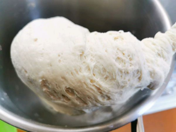再放入厨师机搅拌5分钟,使面团成为光滑有韧性