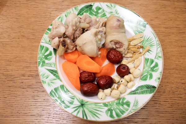 备料:鸡腿洗净,胡萝卜削皮,红枣和莲子无需泡发,黄芪一撮