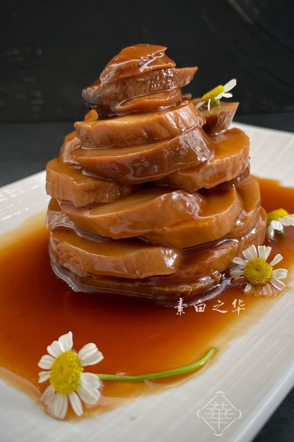 切片装盘,这次垒出一个小山峰的造型,浇一点薄芡在上面很漂亮,用点薄荷或者小雏菊凹个造型,是不是很美~
