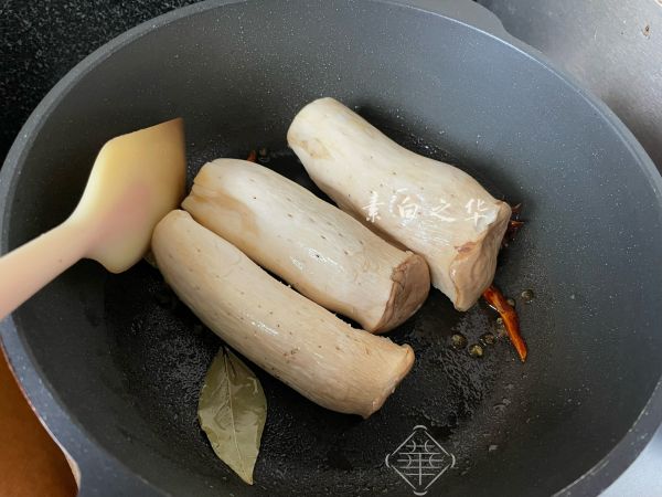 加适量清水,大约漠过杏鲍菇的样子,大火煮开,中小火继续焖煮~