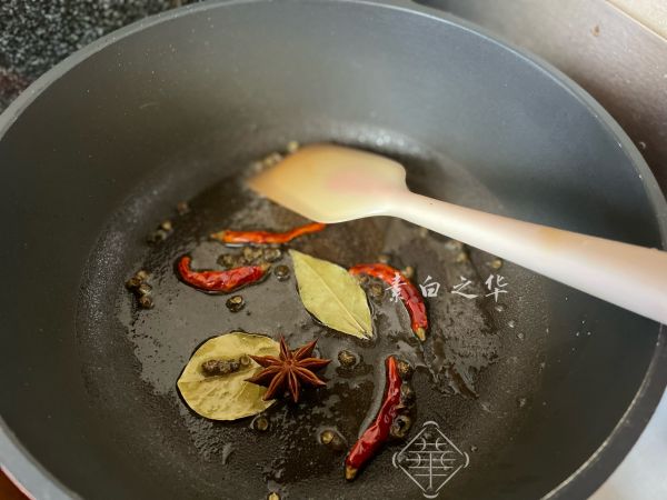 准备好八角、香叶和花椒,丰俭随意,辣椒干也请随意~