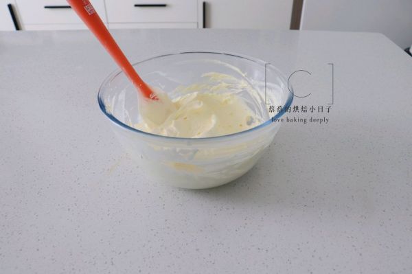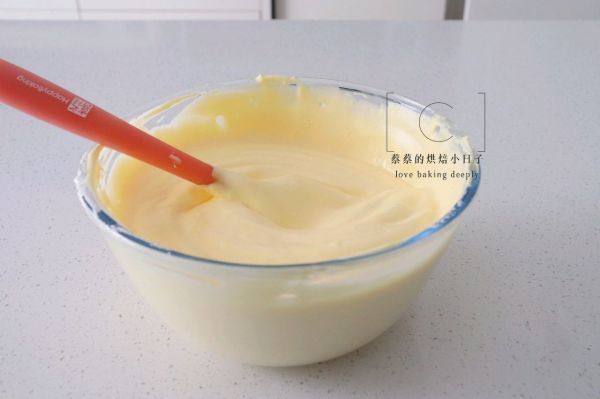 可以用Z字法也可以用翻拌的方法,后蛋法拌好的蛋黄糊细腻光滑无颗粒。 做好的蛋黄糊放一旁备用。