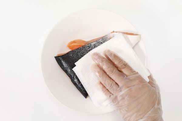 三文鱼用厨房纸巾控干水分
