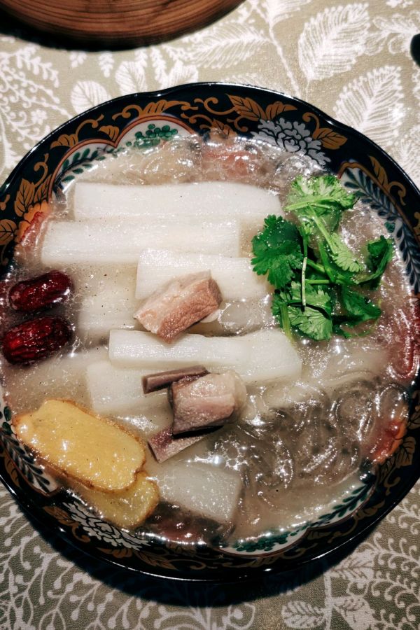 锅中下入白萝卜条,粉条,红枣,胡椒粉和盐,中小火煮20分钟。