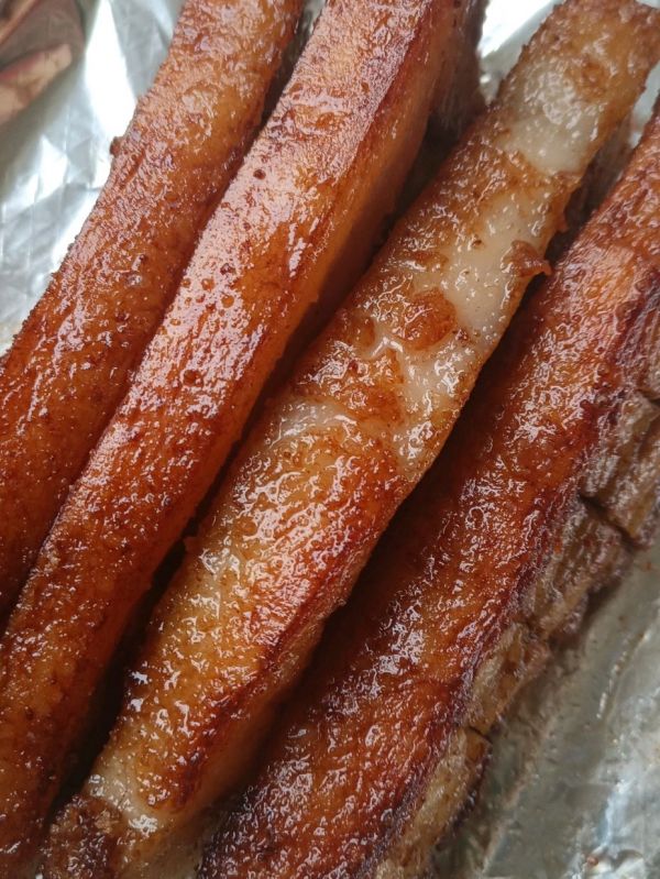 拿出。要是大家喜欢吃干一点的,可以多烤一会,温度不要太高,把肥肉多烤一下。