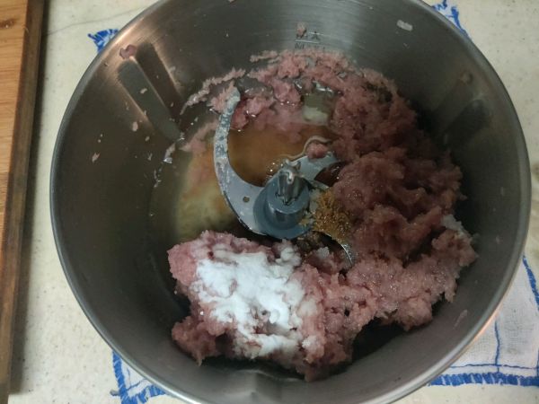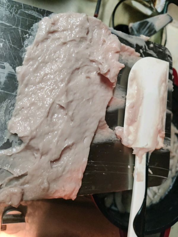 搅拌后的细腻模样。这是加入木薯淀粉的肉泥。