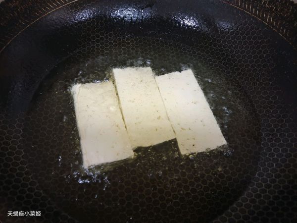 将干辣椒用热水浸泡十分钟,捞出控水备用