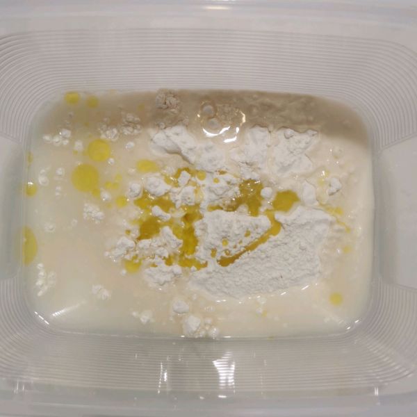 硅胶垫上撒一层高筋面粉,将面团倒扣出来,表面再撒一层高粉