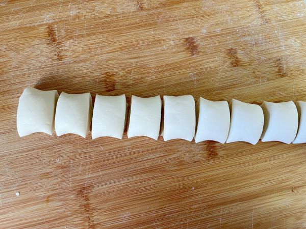 发酵好的面团再次揉光滑,搓成长条切成均匀的小剂子。