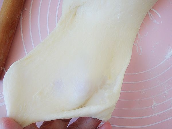 和好的面团是很软的,随意拉扯就能成厚膜的样子。不用追求和到手套膜的状态,所以,这个很好操作。