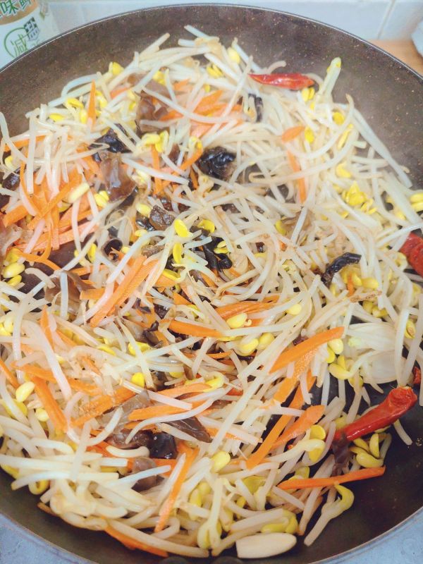 加入剩余的配菜翻炒,加入盐十三香白醋