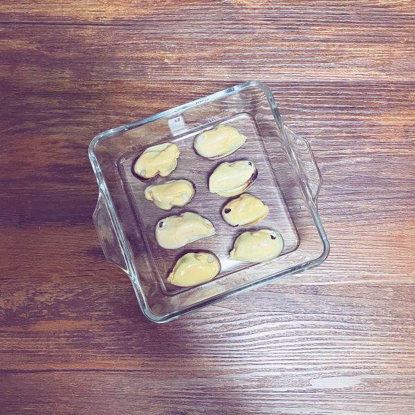 蛋液过筛到贻贝碗中,盖上保鲜膜,开水入锅蒸10分钟