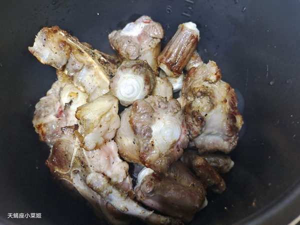 将煎好的牛尾放入高压锅内