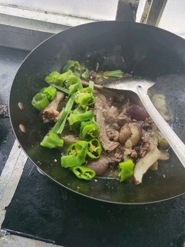 然后放入配菜茄子,还可以放其他的配菜,看自己喜好