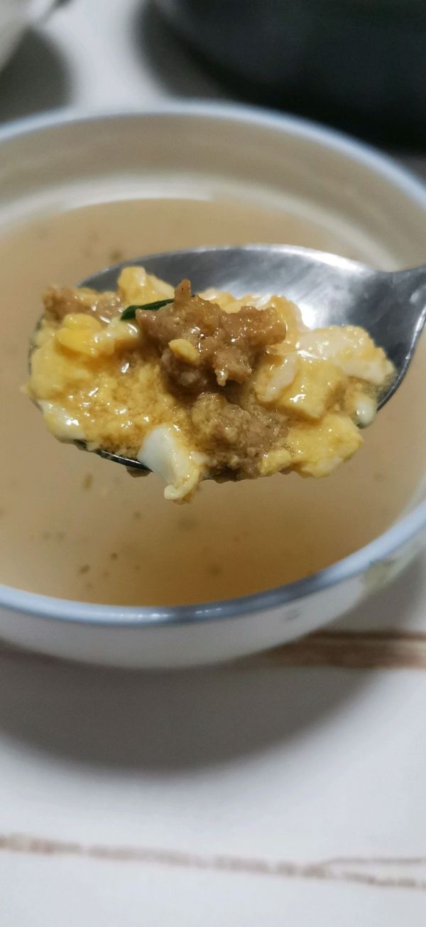 炒熟的肉沫和豆腐鸡蛋羹拌匀