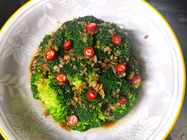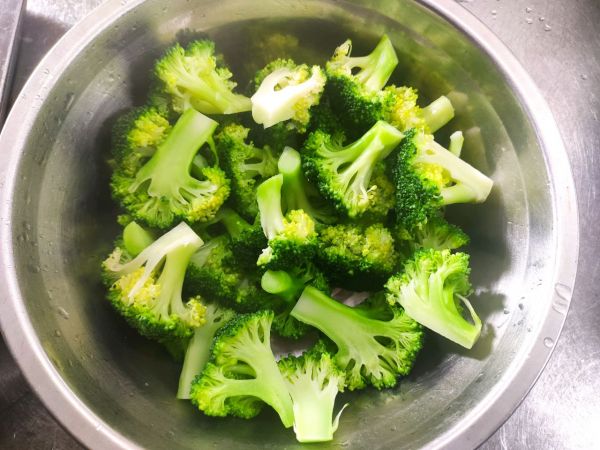 锅里烧水,水开放入西蓝花。 滴几滴油。保持翠绿!水开煮一分钟捞出!