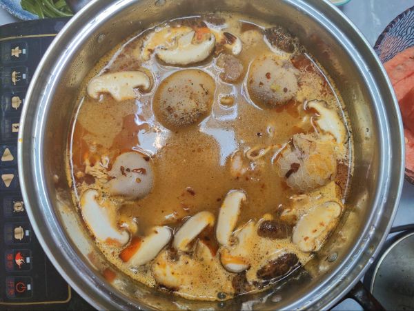 肚包肉底汤加上香菇煮开