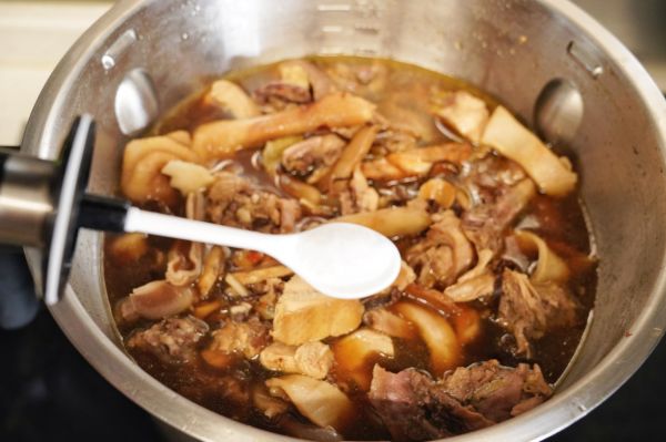 烧煮完成后,勺入1勺盐搅拌均匀即可