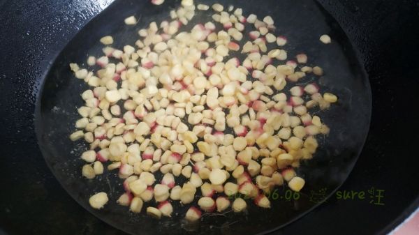 继续扒拉到菜粒油润润了再往里倒开头收拾好的玉米粒