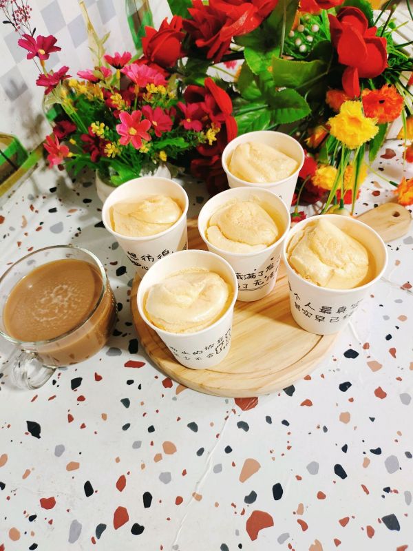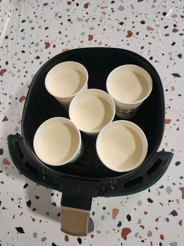 拌好的蛋糊倒进纸杯中(不要倒的太满,八分满即可。)把纸杯使劲儿在案板上震几下,震出里面的气泡儿。