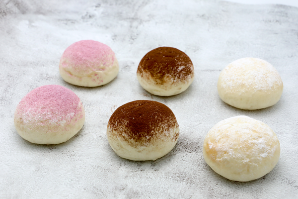 售卖前根据馅料在面包表面筛上蓝莓糖粉/可可粉/防潮糖粉即可