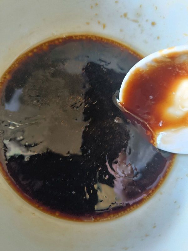 现在来挑酱汁:两勺生抽,一勺蚝油,半勺盐,两勺陈醋,少许白糖和少许香油搅匀