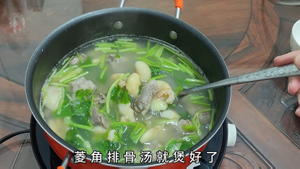 配料: 菱角500克 排骨250克 虾米和干贝少许 芹菜少许