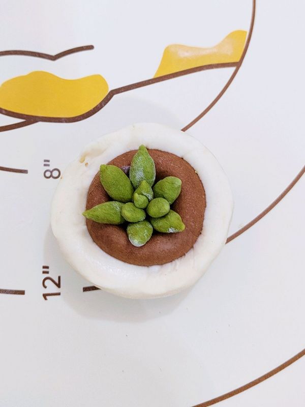 花盆部分:用白色面团包上可可面团,用虎口一点点的包上(看图片)