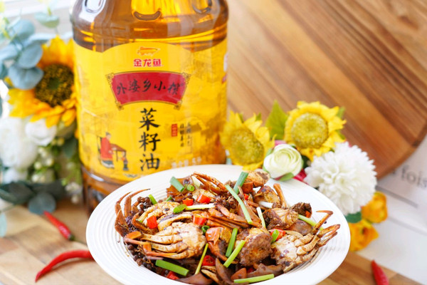 起锅烧油,倒入金龙鱼外婆乡小榨菜籽油,可以充分激发食材和调味料的香味,给大闸蟹上色增香