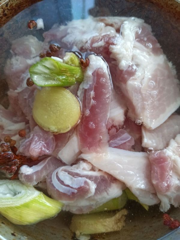 下班时间有限所以没有买整块自己切,让商家切好的肉片,这样不仅不用切了,熟的更快,算是下班偷懒,料酒,葱,姜,八角,花椒,水浸泡十分钟