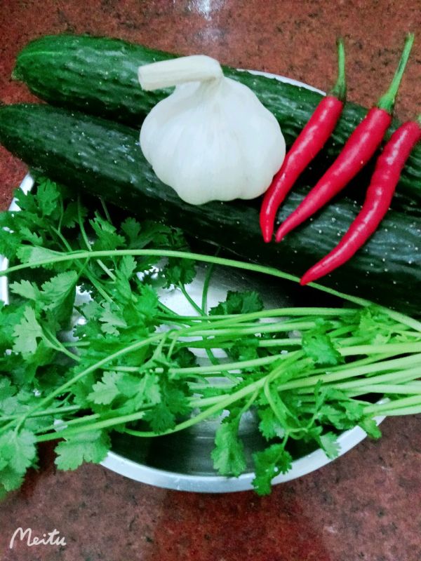 黄瓜洗干净,拍扁,切小段