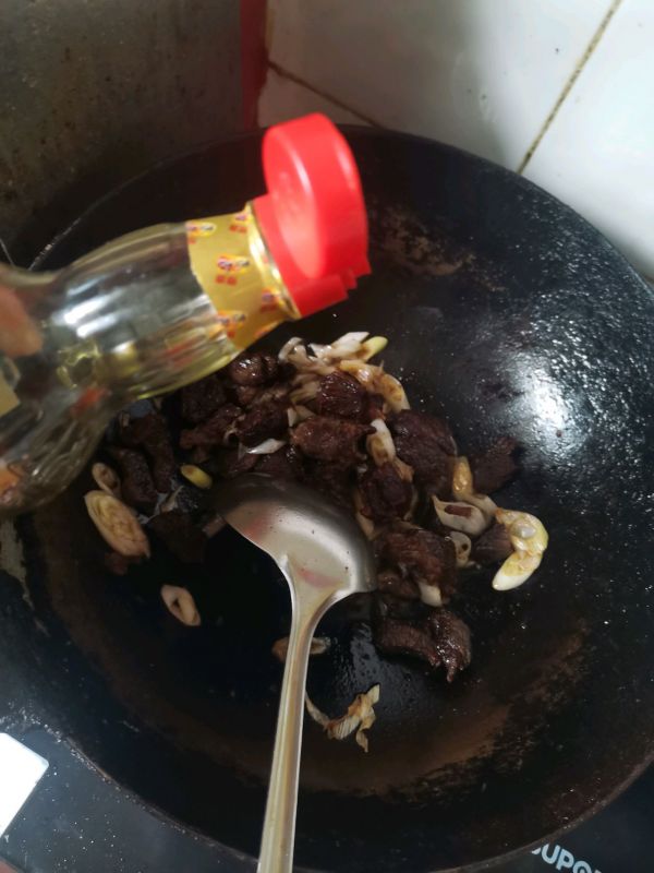 牛肋条肉切成块,最好去掉筋膜,用盐和料酒抓一下