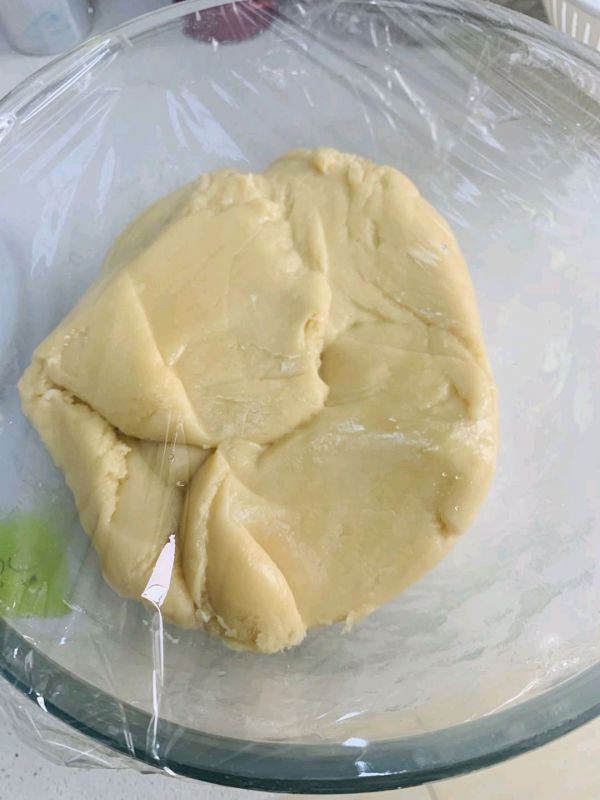 4.月饼馅分成32克每个,皮分成38克每个,包好搓圆。