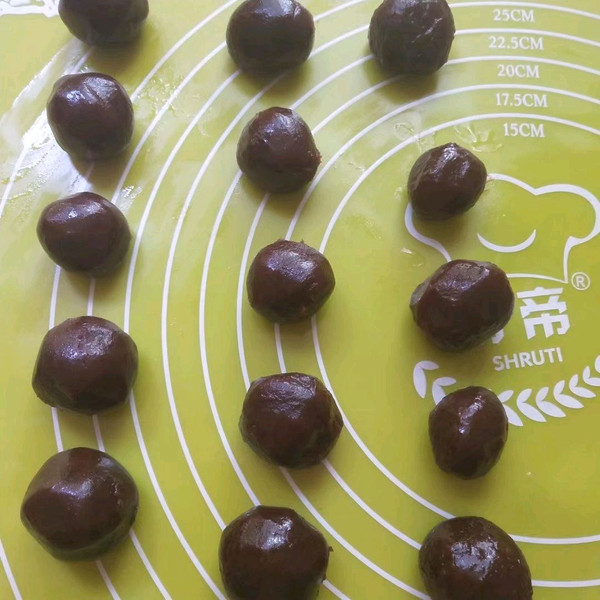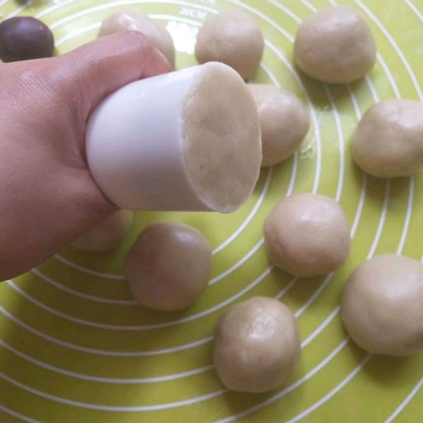 取适量红豆沙团成均匀的小剂子,其他以此类推。